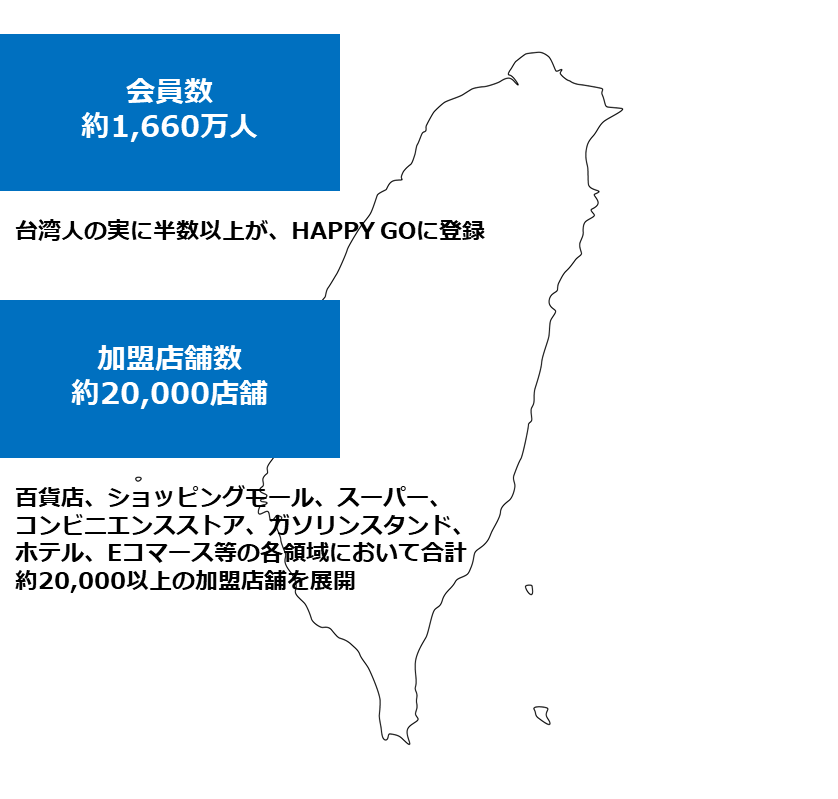 2018年3月時点、台湾で約1,660万人の会員を保有し、百貨店、ショッピングモール、ホテル、コンビニエンスストア、ガソリンスタンド、Eコマースなどの各領域で、合計20,000以上の加盟店舗を展開している台湾最大級の会員プログラムおよび共通ポイントサービスです。